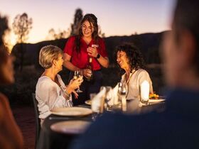ウルルを背景に、星空の下で楽しむBBQディナー。美味しい食事と満天の星、ガイドの夜空の物語が忘れられな…