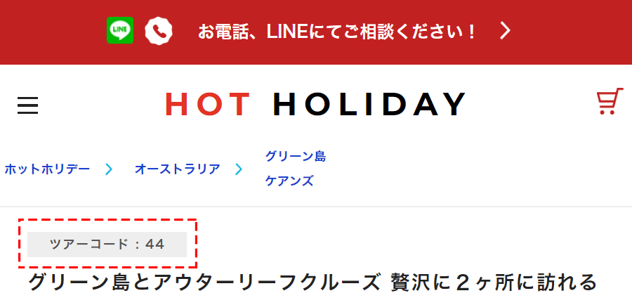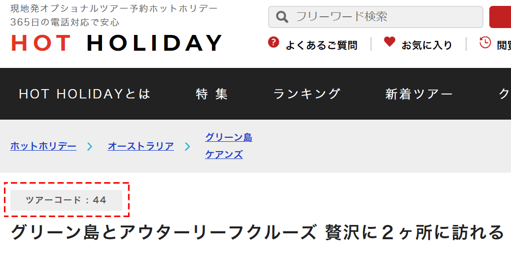 - ツアーコードは各ツアーページのツアー名の上に表示しています。