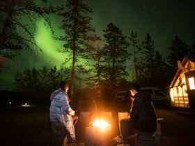 オーロラ鑑賞中は暖かい飲み物やスナックの提供あり