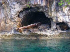 パラオの海に残る戦争時代の大砲は船上から見学