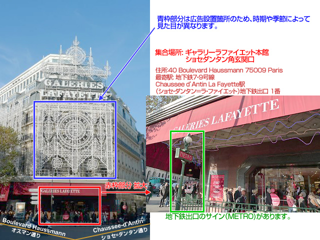 【集合場所】:ギャラリー・ラファイエット本館の ショセダンタン角玄関口