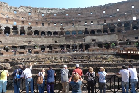現地で集合後、ガイドの誘導でコロッセオの荷物検査を受けましたが、検査を終えると、...