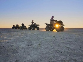 マカディカディ塩湖で4輪バイクに乗りながらサンセット鑑賞