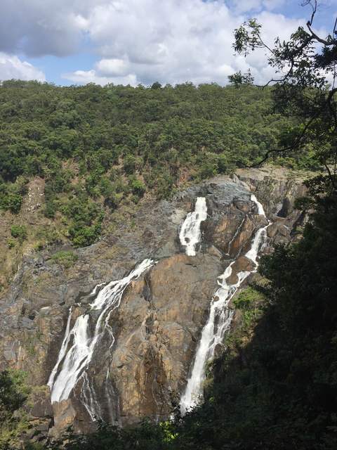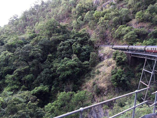 途中、滝をみるために降りましたが遠く向こうに列車をみることが出来ました。スカイレールが混んできたため、滝からキュランダまでは相席でしたが、写真をとってもらったり楽しくあっというまの50分でした。