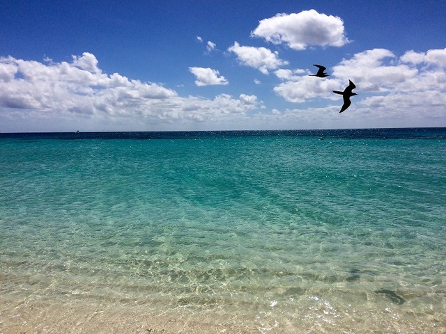 ホントに青い海、空、白い砂、素晴らしい景色です。