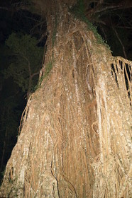 締め殺しの木は、その大きさにも驚かされますが、夜の熱帯雨林の中でライトに照らされると、まさに、神秘的。