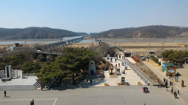 展望台では天気も良く、ちょうど観光客が少ない時間だったのでタイミングよく望遠鏡を使え、はっきりと北朝鮮を見ることができました。人が多い時は望遠鏡が足りない時があるそうです。(念のためオペラグラスを持参していました。)
