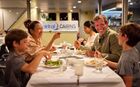 食事はビュッフェ形式で生牡蠣やエビなどの海鮮類や焼きそばなど美味しかったです。