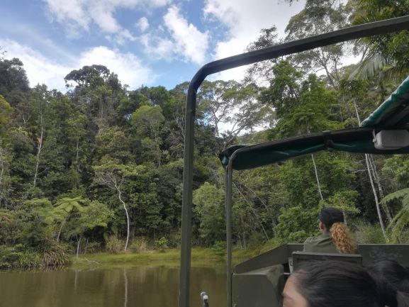 入場してすぐアーミーダックの乗車になりました。ガイドは英語で全くわからなかったですが、ディズニーのインディージョーンズみたいで雰囲気があり楽しかったです。青色の蝶ユリシスや、大きいトカゲ?も見ることができました。
