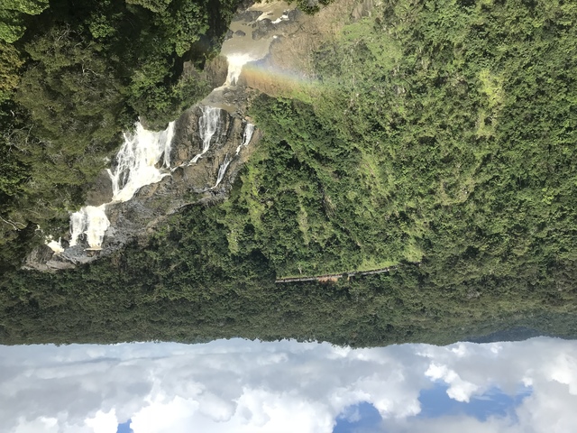 乗り合わせのマイクロバスでホテルまで迎えに来てもらい、スカイレールの乗り場まで行きました。途中2度下車をしてキュランダに向かいました。途中下車した滝が見える駅では、反対側にキュランダ鉄道が停車していて、虹を含んだ綺麗な写真が撮れました。