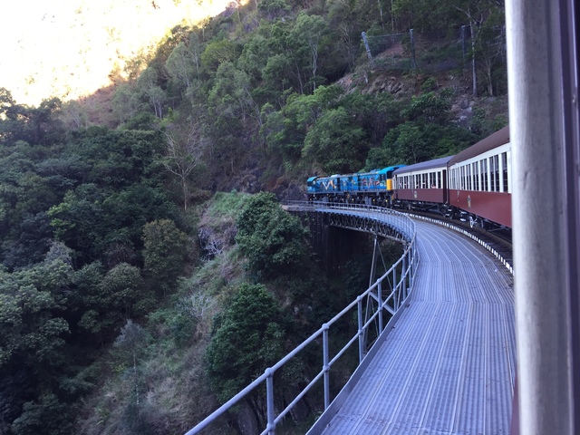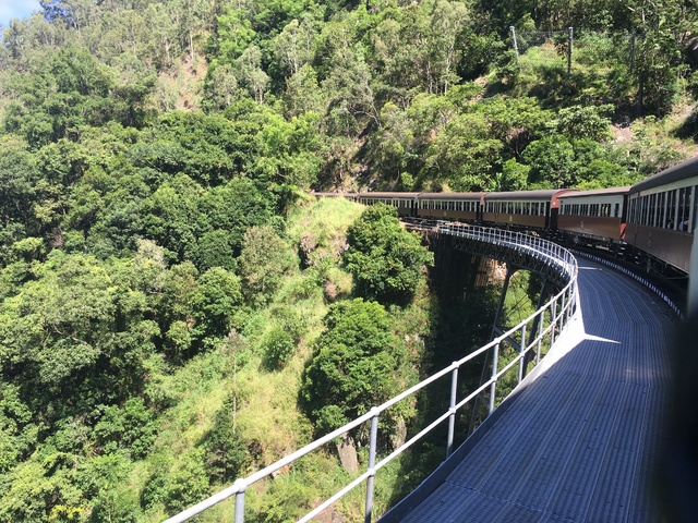 帰りのキュランダ列車でのせっかくの説明が英語なので分からないところが多く残念でしたが、他人に気兼ねすることなく自由に歩けて気楽で良かったです。スカイレールや帰りのキュランダ列車の時間を他のツアーより自由にに選べるのでこのツアーにしました。詰め込むことよりのんびりをモットーにしているので朝も遅めの10:30ごろのピックアップで帰りは15:30の遅い方の列車にしました。キュランダでののんびり散策には丁度いい感じでしたが、ケアンズ駅に17:30ぐらいに着くので、ケアンズに戻ってから駅直結のショッピングモールには間に合いませんでした。特に日曜日だったからかも知れません。全体として問題なく、リラックスして熱帯雨林の散策やキュランダ村をゆったり楽しめました。スカイレールは怖くないのかなと心配していましたが全く問題なしでした。