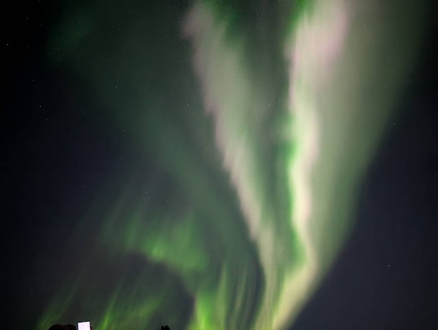4日目 最初から最後までオーロラが出て、オーロラ爆発、オーロラダンス、ピンクのオーロラまで見えた。感動です。