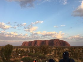 旅行の間近に予約を取ったにも関わらず、とても安くて、ガイドさんの対応もとても良かったです。エアーズロックのサンセット、サンライズ、そして登山とその他にも色々エアーズロックを楽しむことができました。この写真はサンセットの時の写真ですが、サンセットやサンライズでも絶景で感動しましたが、エアーズロックの頂上は、頂上まで登った達成感と、とても綺麗な景色でさらに感動しました。また、カンガルーとクロコダイルのお肉を食べました。個人的にはクロコダイルが凄く美味しかったです。
